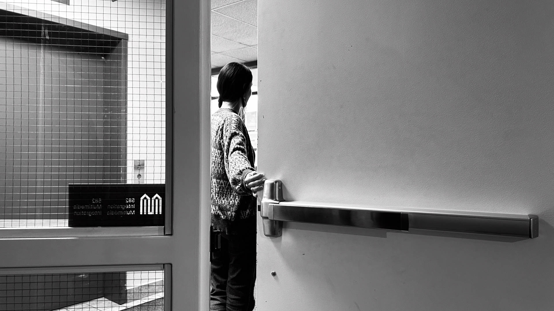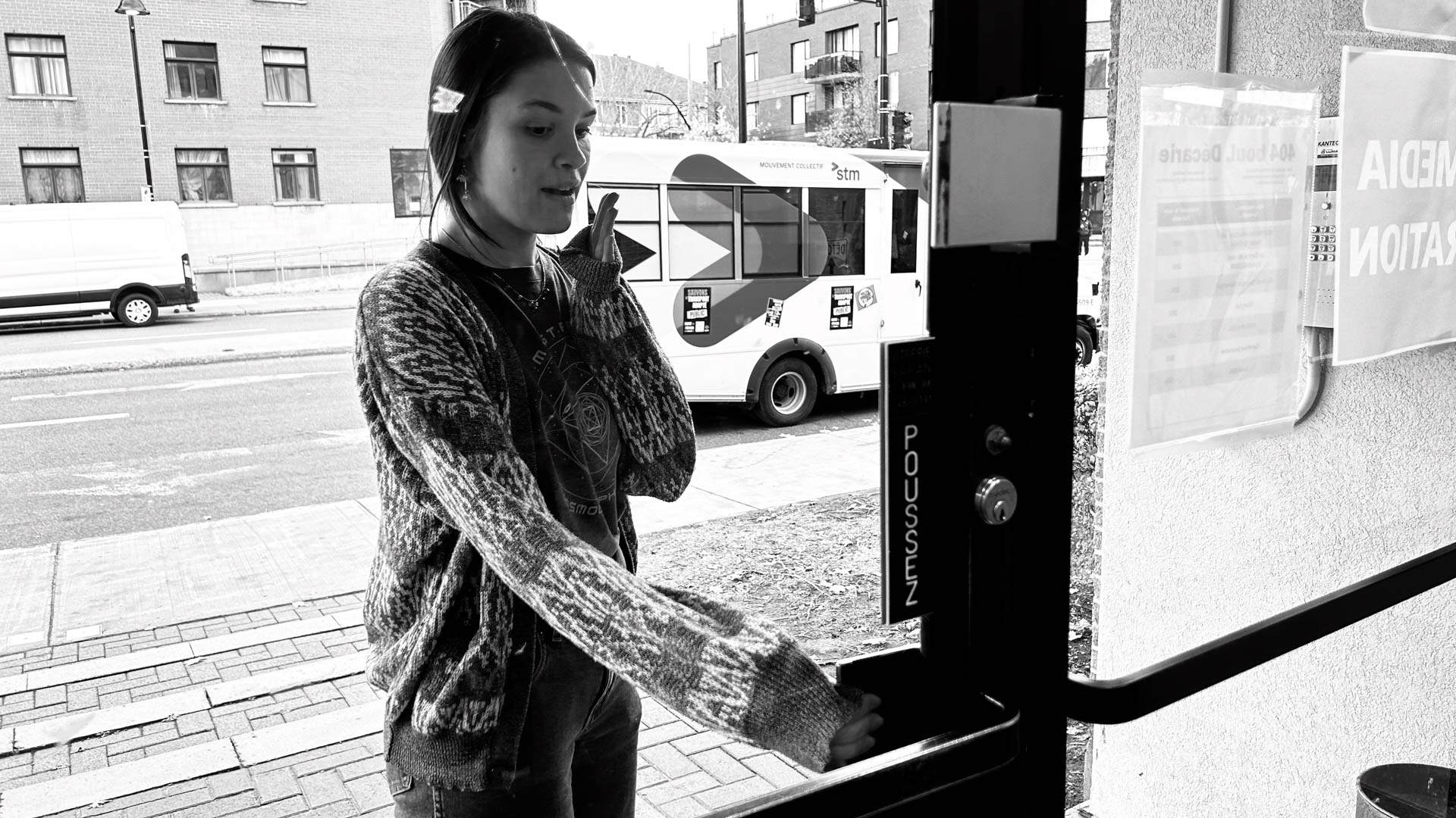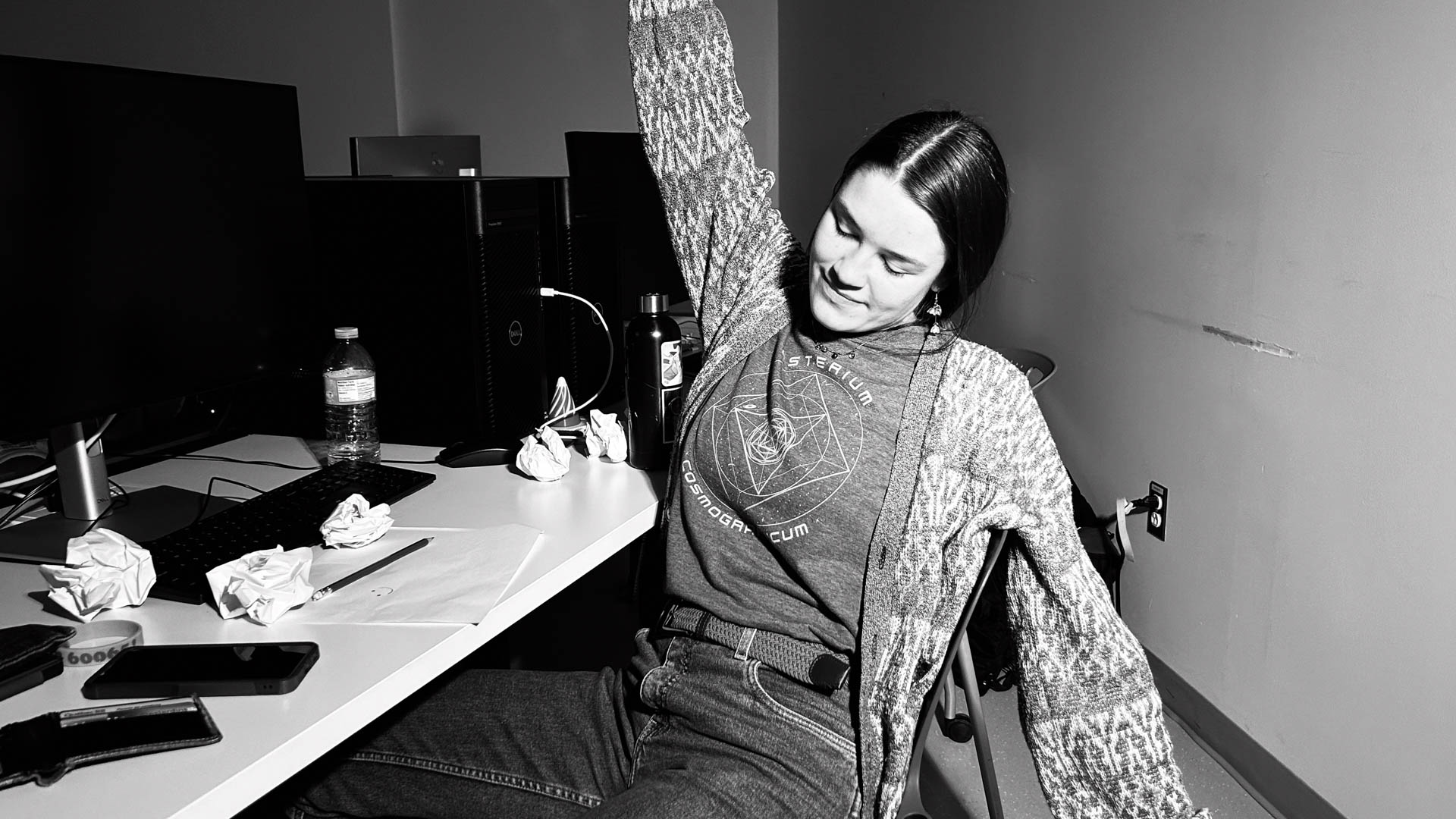A student works quietly in the computer lab, tired, she decides to go outside for a quick break & stretch. She realizes her phone and keys are still on the desk inside. Suddenly her ex bf arrives and lets her in, she still likes him but hes trying to move on, she insists that they play tic-tac-toe to break the ice.