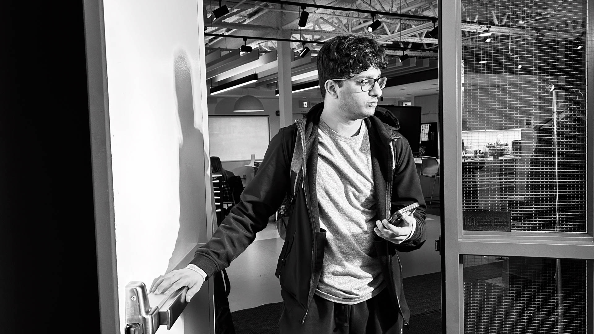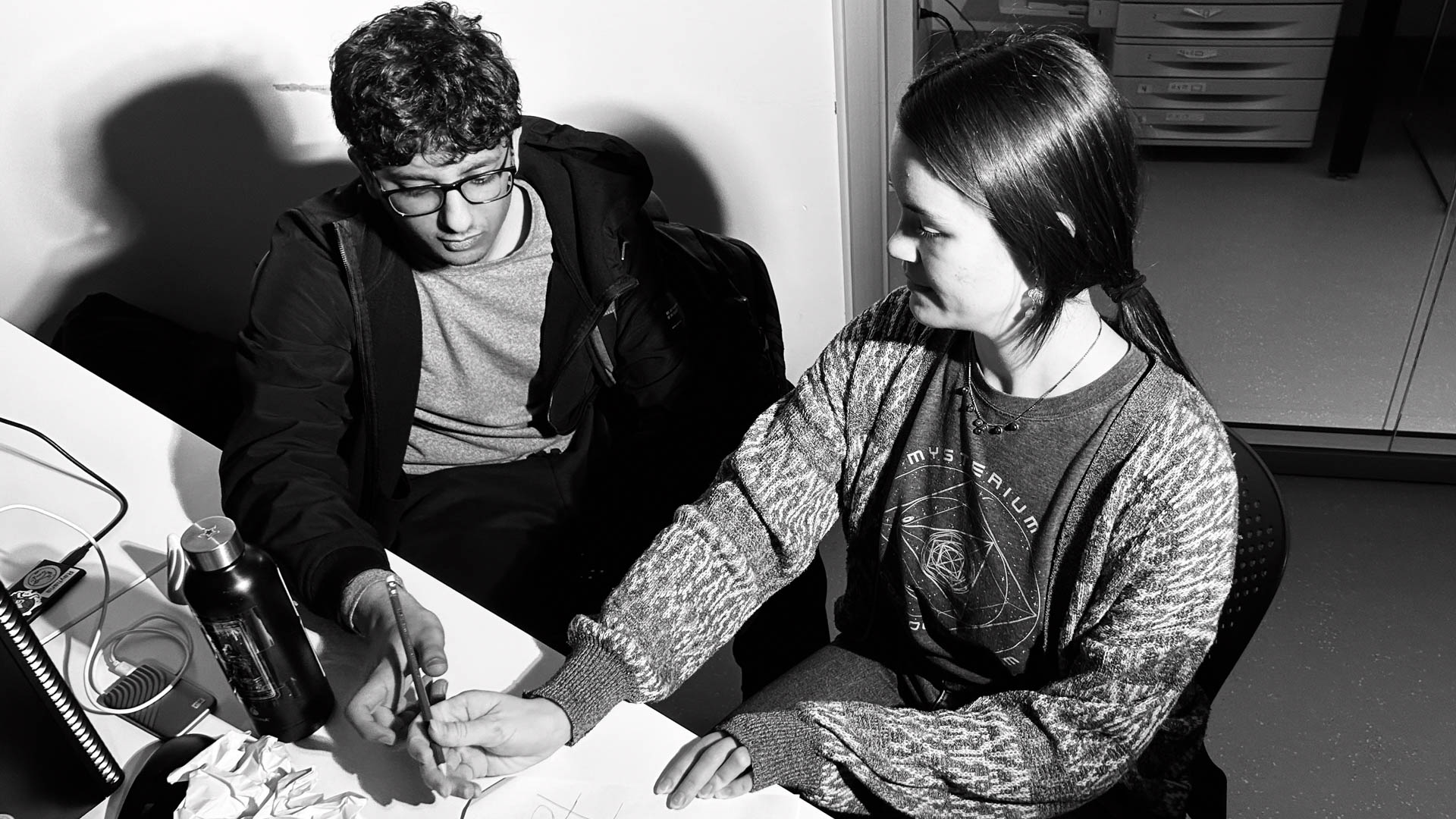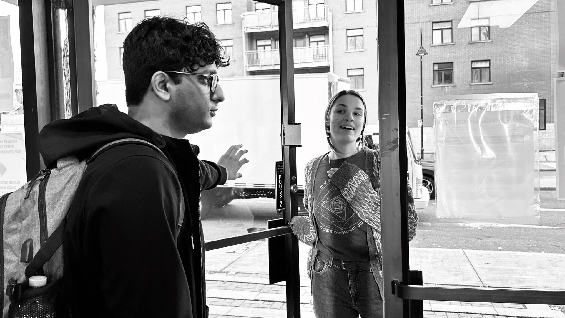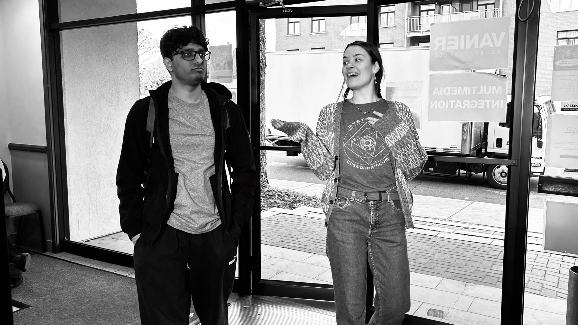 A student works quietly in the computer lab, tired, she decides to go outside for a quick break & stretch. She realizes her phone and keys are still on the desk inside. Suddenly her ex bf arrives and lets her in, she still likes him but hes trying to move on, she insists that they play tic-tac-toe to break the ice.